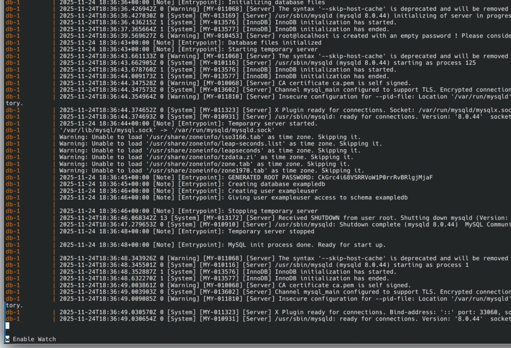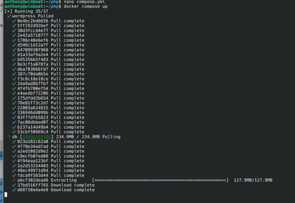 You will now see the first run where Docker will download the images, and then set them up.