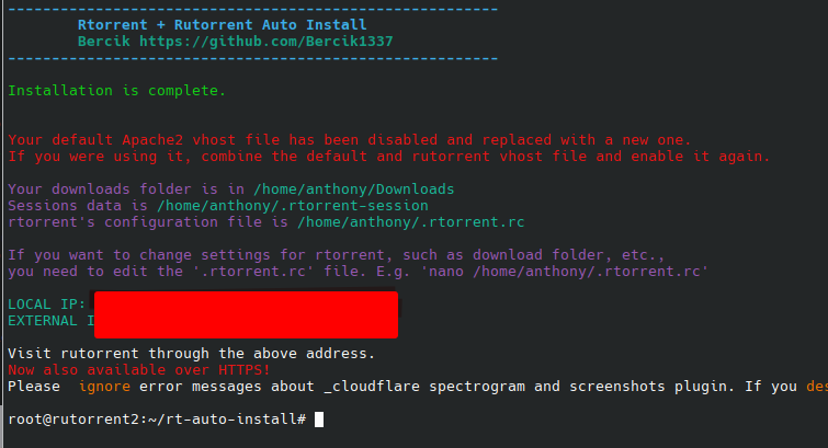 Once you get this screen, fire up your browser/open a new tab and then head to your IP Address/rutorrent.
