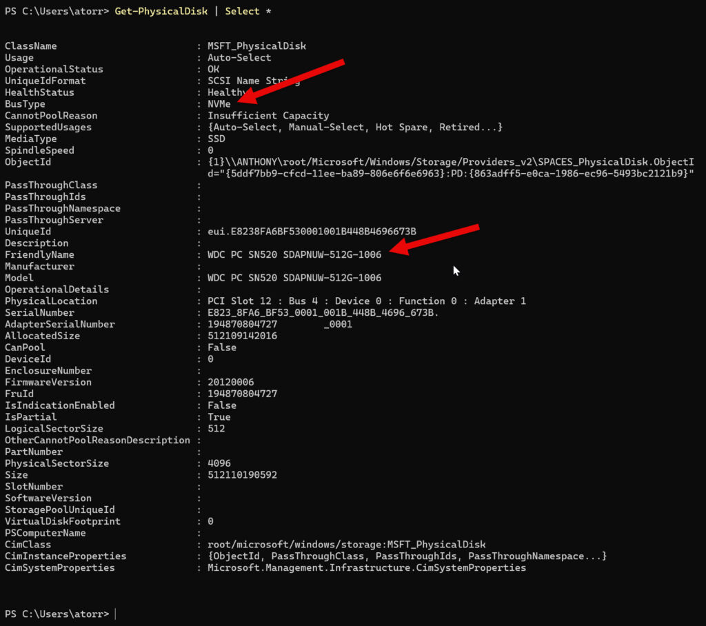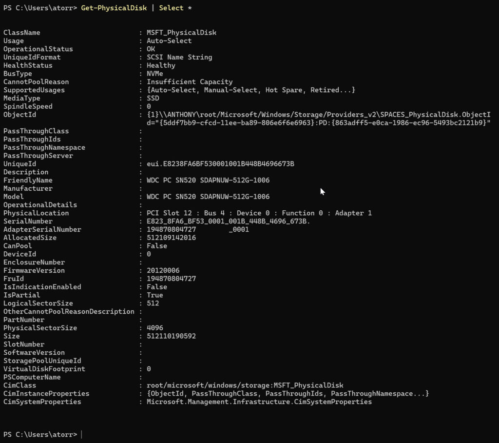 Get-PhysicalDisk | Select *