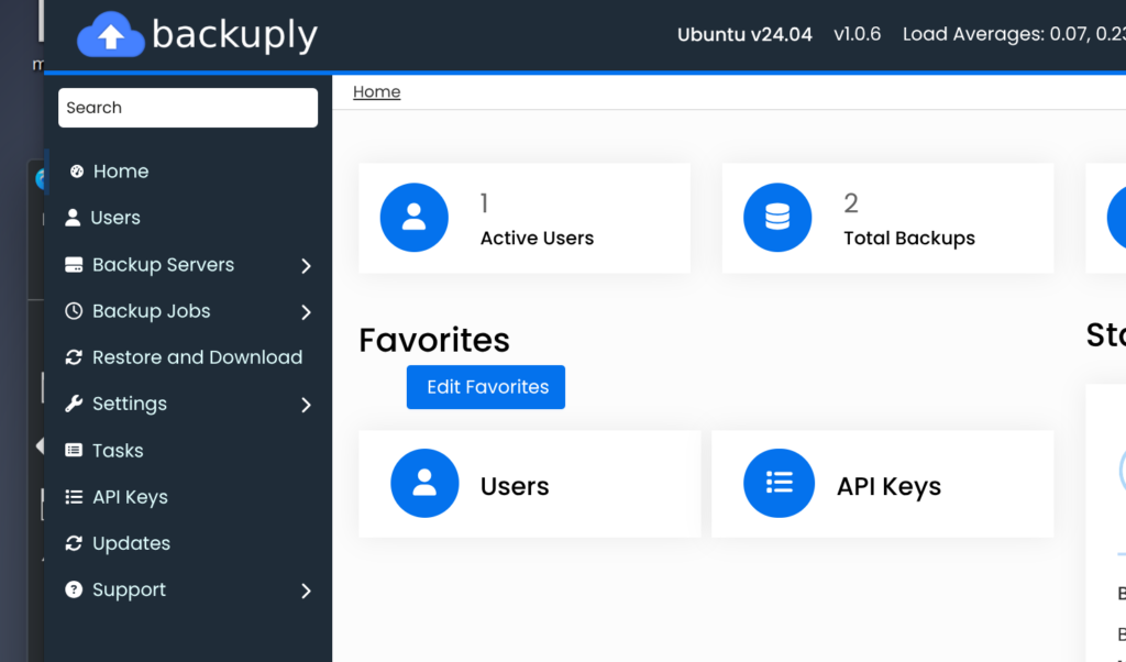 We are now going to setup Backuply. This is located on the left at the bottom. If for some reason you do not have it install, you can install it from the Apps Install just like we did for the firewall.