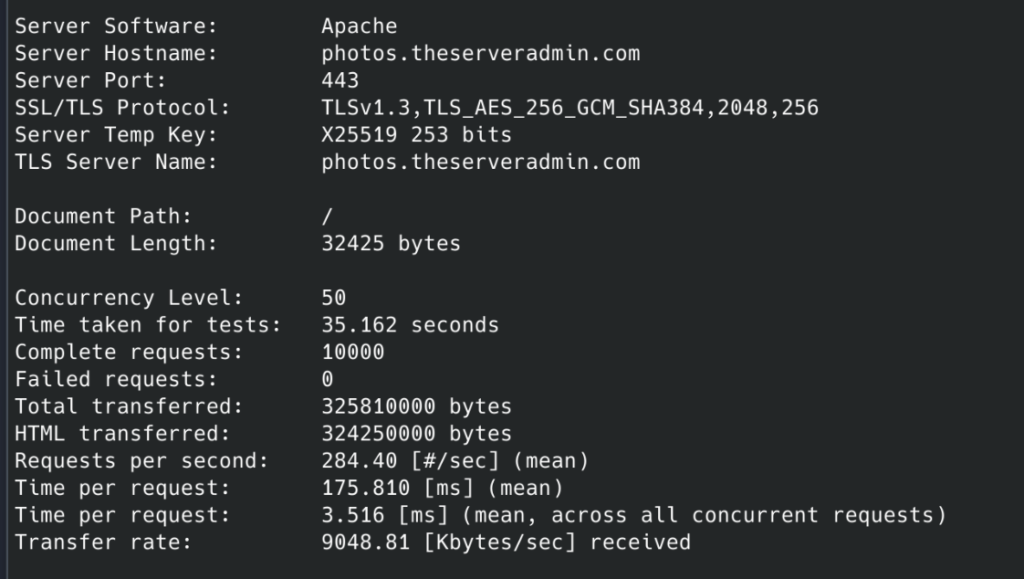 Now as you all know, I had to benchmark the server, so I setup 3 sites, a default html site, a photos site, and a WordPress site. All three with a SSL.